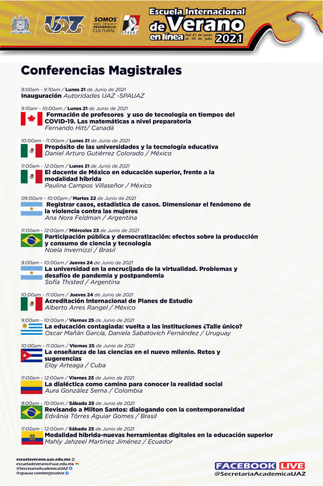Posted in Académicos, Avisos y Noticias Programa de la Escuela Internacional de Verano en línea 2021 junio 21, 2021 Más avisos... CONTINUACIÓN DE FOROS DE REFORMA Comunicado 11 de marzo 2024 Día mundial del libro y del derecho de autor Comunicado Oficial 09 de marzo de 2025