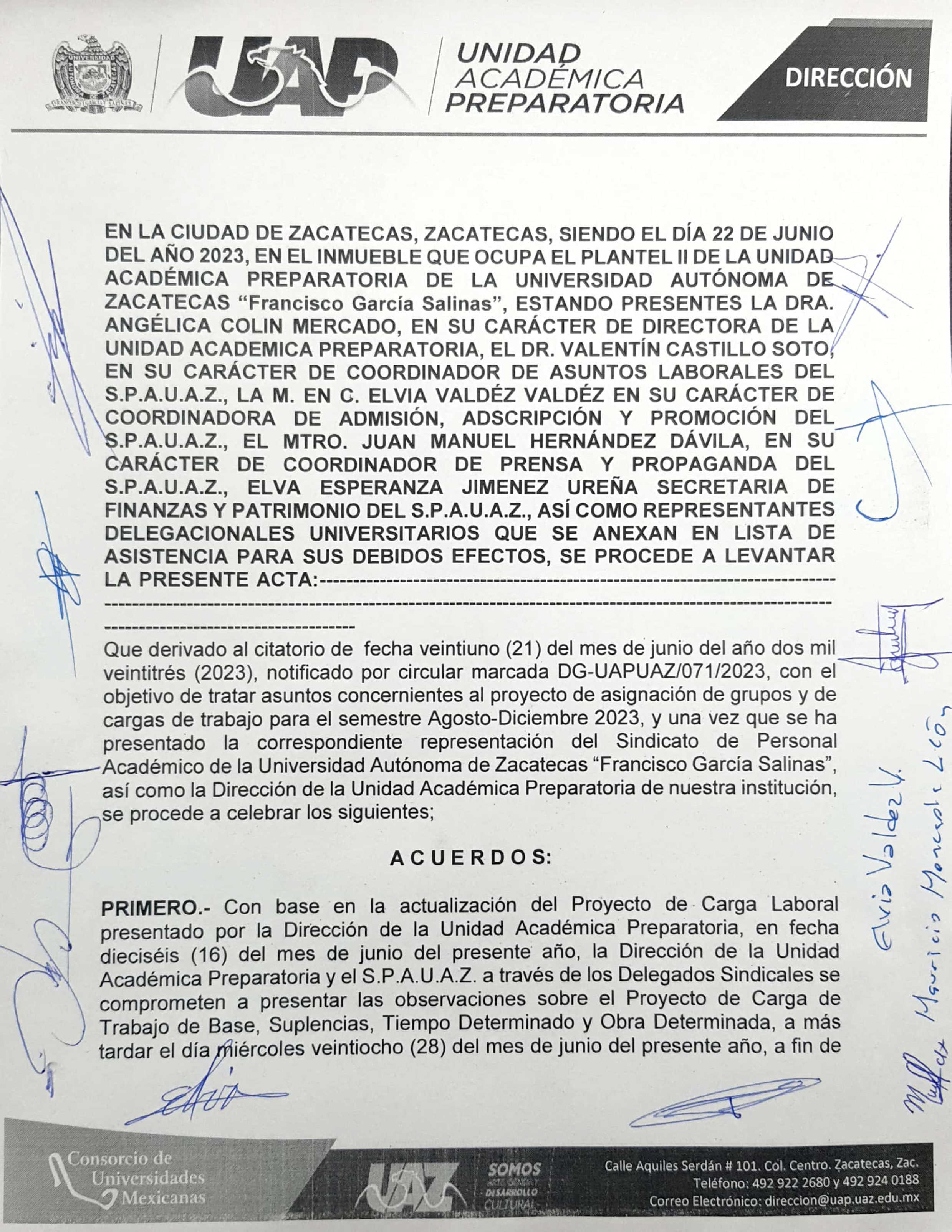 Posted in Avisos y Noticias Acuerdo del Proyecto de Carga Laboral Unidad Académica Preparatoria junio 28, 2023 Cargando... ¿Tarda demasiado? Recargar el documento | Abrir en una nueva pestaña Download [1.31 MB] Más avisos... LOGROS DE HUELGA Felicitación a las ingenieras e ingenieros agrónomos PADRÓN PRELIMINAR Conmemoración 48 aniversario de fundación del SPAUAZ
