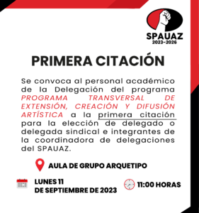 Posted in Actas y Acuerdos Primera Citación Programa transversal de extensión, creación y difusión artística septiembre 11, 2023 Más avisos... Primera Citación Antropología CITACIÓN REPOSICIÓN INGENIERÍA ELÉCTRICA Primera citación para renovar delegación en CECIUAZ Tercera citación par renovar delegación en Unidad Académica de Matemáticas
