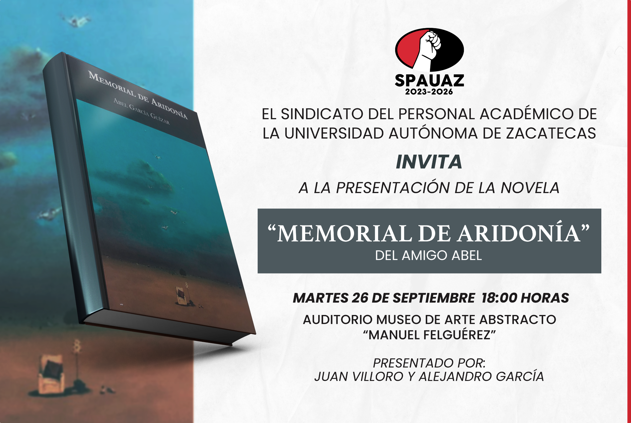 Posted in Avisos y Noticias Presentación de la novela «Memorial de Aridonía» septiembre 20, 2023 Más avisos... Invitación al Primer Informe de Actividades del Comité Ejecutivo 2020-2023 Feliz día a las economistas y los economistas /2022 Comité Ejecutivo propone ruta crítica para emplazamiento a huelga 2022-2023 ¿Sabias que el plazo para reformar los estatutos del SPAUAZ venció en 2019?