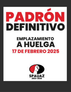 Posted in Avisos y Noticias PADRÓN DEFINITIVO EMPLAZAMIENTO A HUELGA 17 DE FEBRERO 2025 febrero 14, 2025 Cargando... ¿Tarda demasiado? Recargar el documento | Abrir en una nueva pestaña Download [486.05 KB] Más avisos... Citatorio para Comité de Huelga / 27 de enero 2023 Primera citación para renovar delegación en la Licenciatura de Nutrición Invitación a participar en el plebiscito del emplazamiento a huelga 2020 Felicitación día mundial del Docente