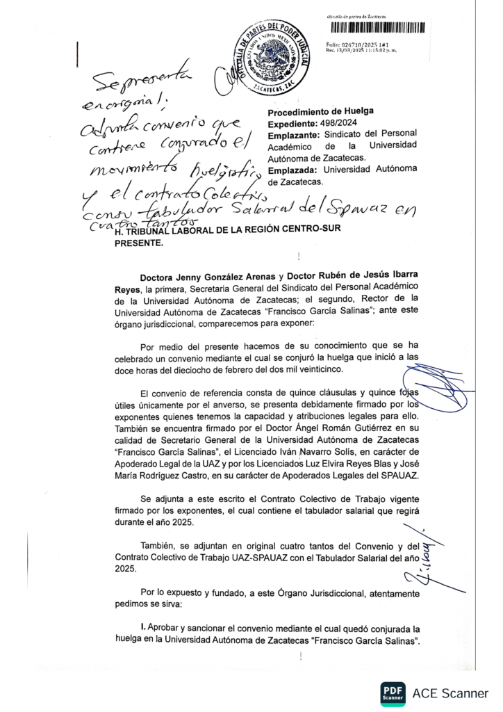 Posted in Avisos y Noticias Acuse de recibido del Convenio de Conjuramiento de Huelga 2025 marzo 14, 2025 Cargando... ¿Tarda demasiado? Recargar el documento | Abrir en una nueva pestaña Download [2.06 MB] Más avisos... El Sindicato del Personal Académico de la Universidad Autónoma de Zacatecas inicia el año emplazando a huelga Infografía proceso extraordinario de regularización Citatorio segunda Asamblea General del emplazamiento a huelga 2021 Documento 31 de diciembre 2020