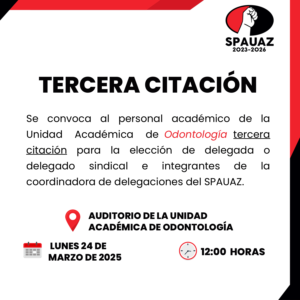 Posted in Avisos y Noticias Tercera citación para el personal académico de odontología marzo 22, 2025 Más avisos... Comunicado del Colegio Electoral del SPAUAZ 20 de agosto de 2020 ¿Sabías que como docente de la UAZ tienes un seguro de vida? COMUNICADO OFICIAL ÚNETE AL CANAL DE DIFUSIÓN