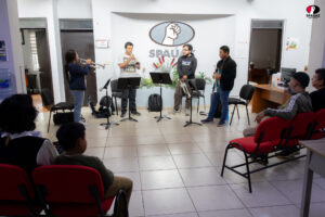 El Ensamble de Trompetas Rafael Méndez del CASE Artes UAZ visitó las oficinas del SPAUAZ, ofreciendo a los presentes una interpretación musical como parte de su preparación para su próxima participación el 10 de julio en el Palacio de Bellas Artes.